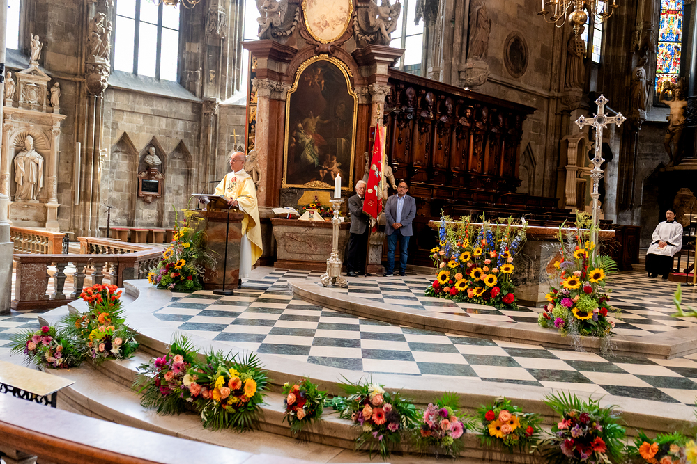 Ende August feiert Dompfarrer Toni Faber im Stephansdom den mittlerweile zur Tradition gewordenen Gottesdienst zu Ehren des Heiligen Fiacrius. Der Heilige ist der Patron der Gärtner, Blumenhändler, Lohnkutscher und Fiaker. Wir waren mit der Kamera dabei.